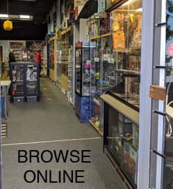 We accept trades of consoles and games for all retro and modern systems, and some videogame related collectibles. All generations of Atari, Nintendo, Sega, Sony Playstation, Microsoft Xbox, and more. (We DO NOT buy PC games, movies, comics, or other items that are not gaming related.)